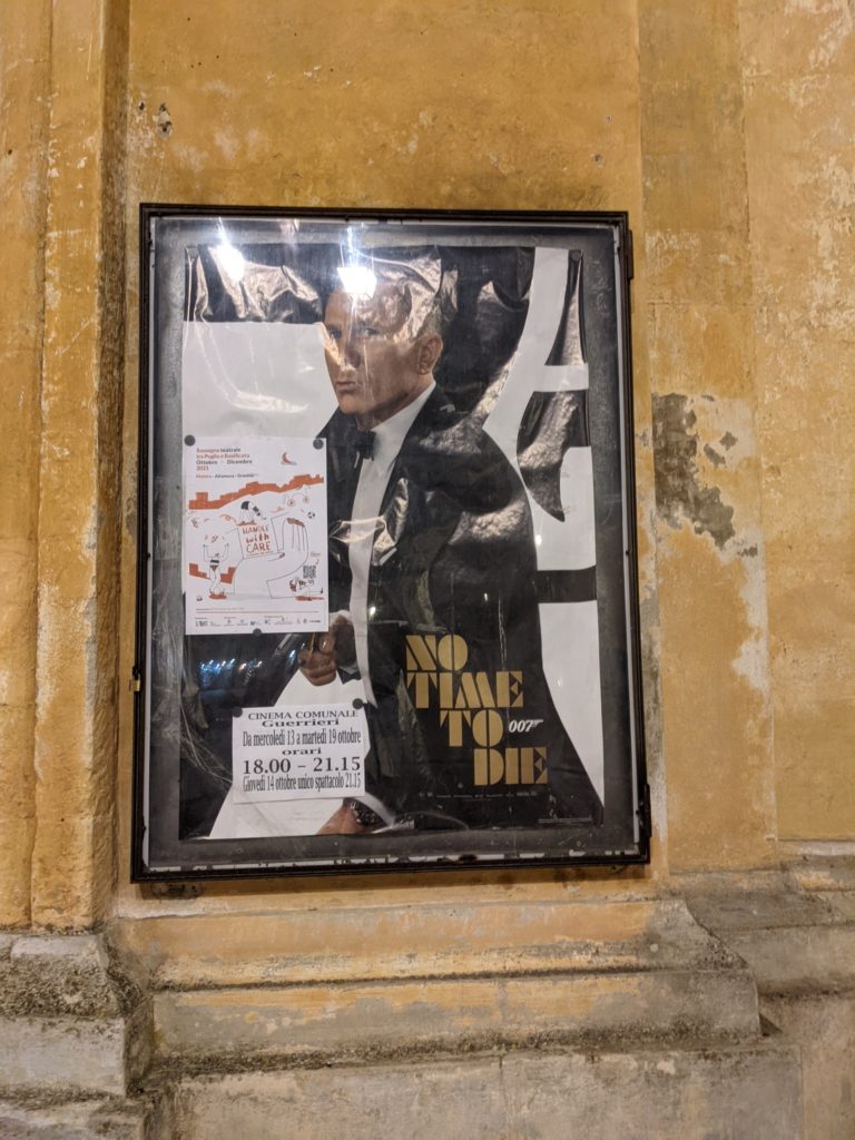 Part of the new James Bond movie was filmed in Matera. It was playing at local theaters but we didn’t see it.