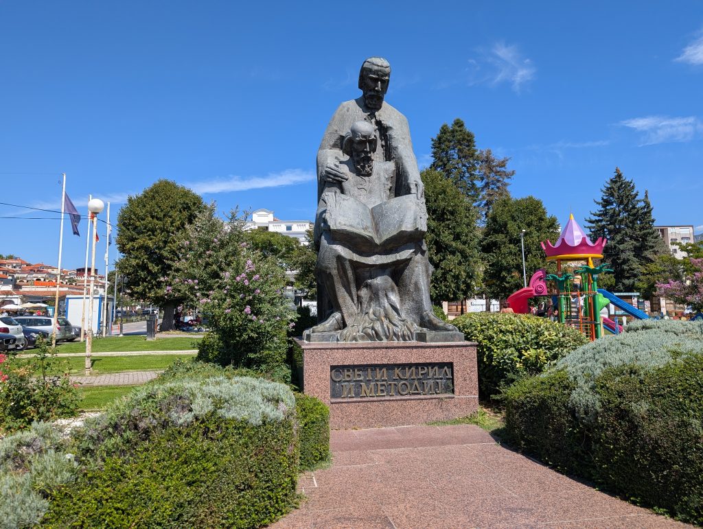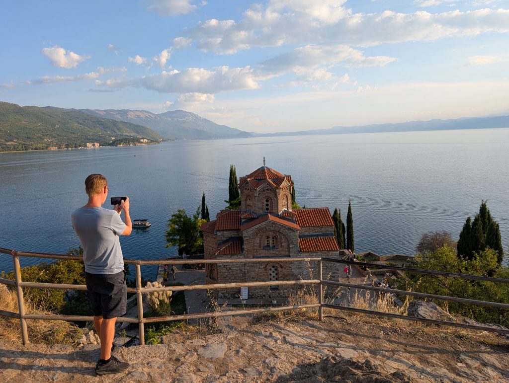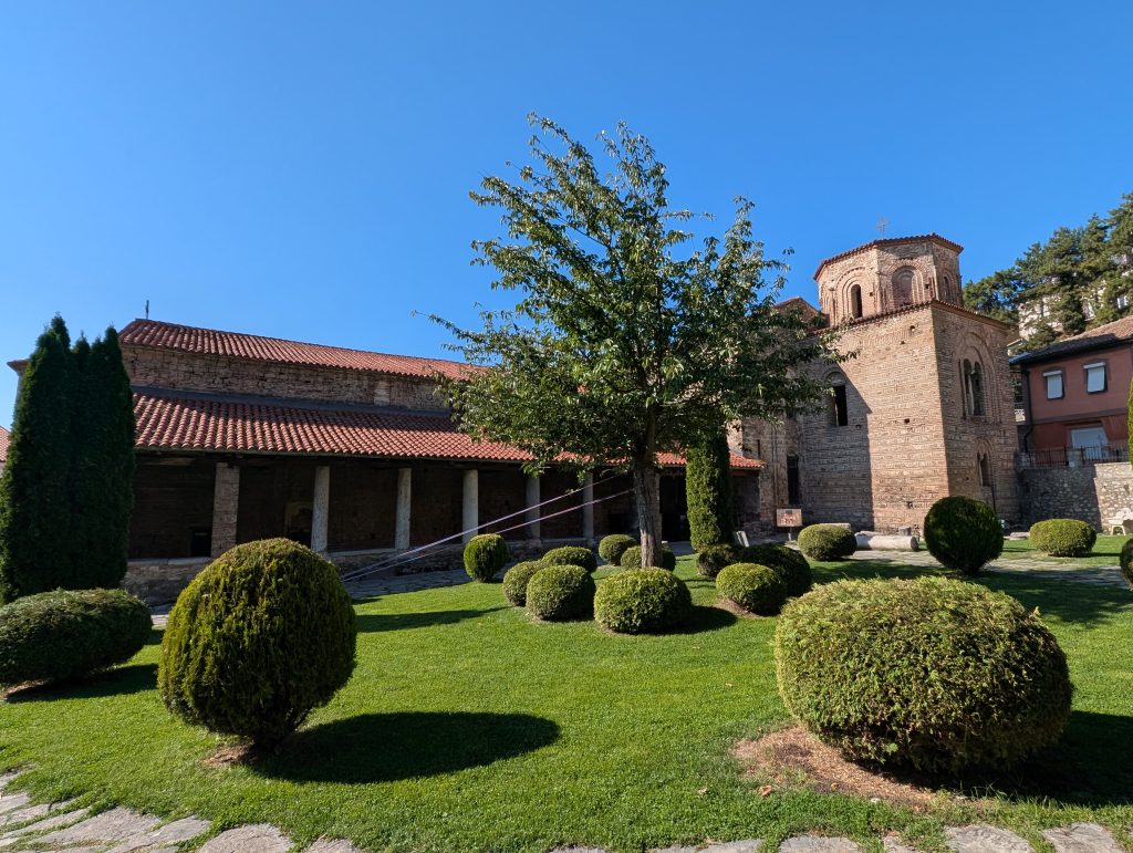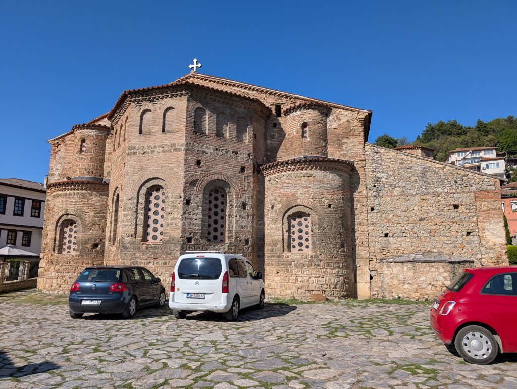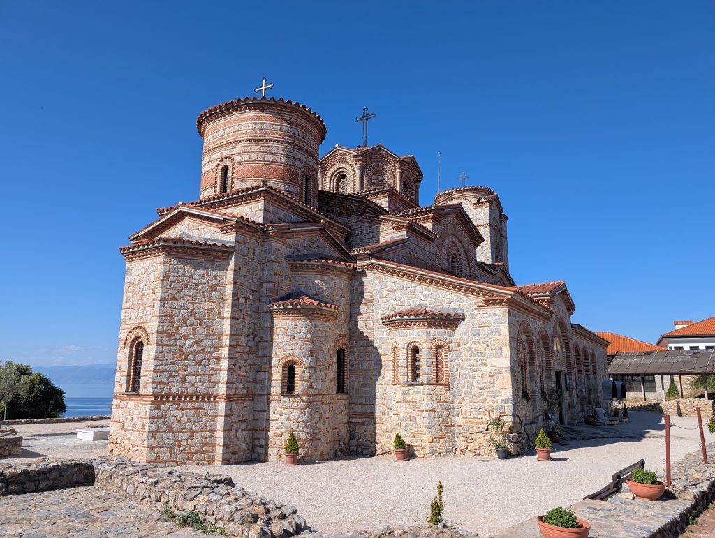 The next day was Saturday and Chad put together a little morning tour from us with the help of ChatGPT to visit several of Ohrid’s historic churches. Ohrid was a very important religious center from the 9th through 11th centuries and is sometimes called “the Jerusalem of the Balkans.” At one time it supposedly had 365 churches, one for each day of the year. The Ohrid Literary School, established in the 9th century, translated religious texts into Cyrillic and was essential to the spread of Orthodox Christianity. We visited five sites on our tour – three churches, a fort, and a gallery of religious icons. Each had a fee of 150 denar per person (about $3). Most accepted credit cards but a couple were cash only.