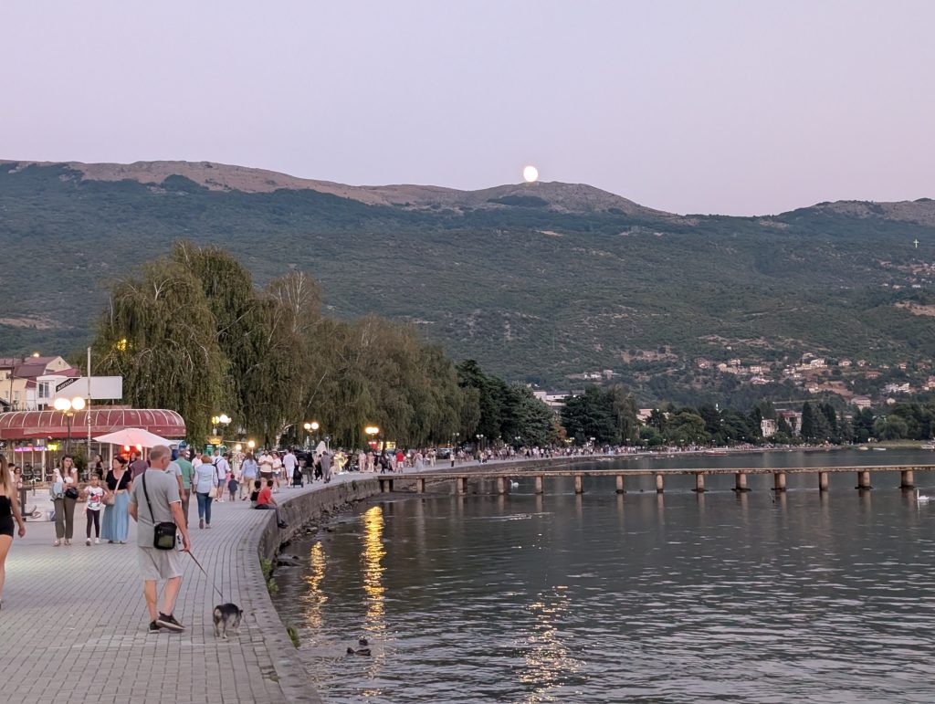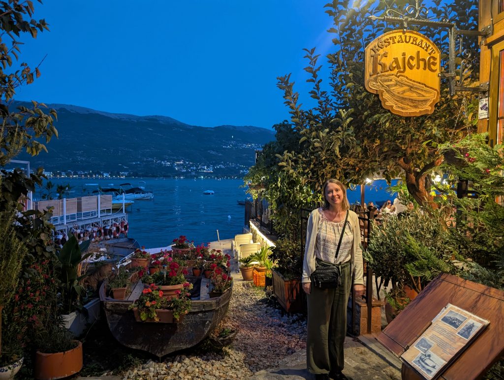 The next day we had a workday, but broke it up with a very nice walk along the lake, stopping into a Macedonian restaurant Chad researched near our place called Viva Ksantika kaj Tanja to make a reservation for that evening.