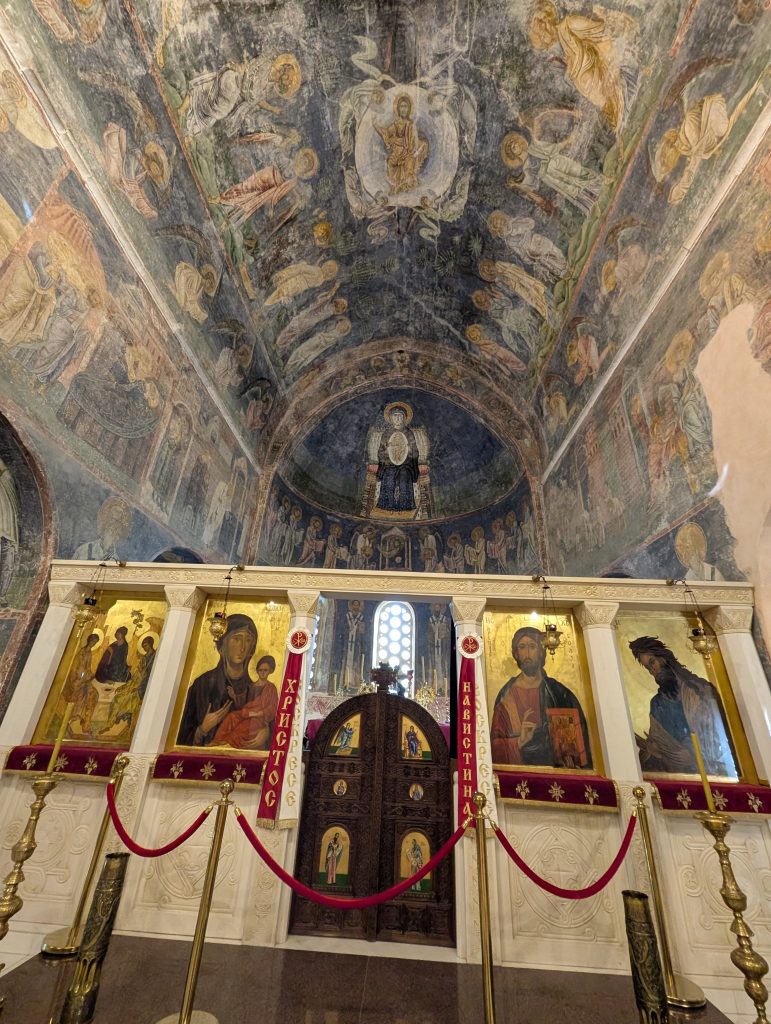 We started our tour at the Church of Hagia Sophia, which, like the version in Istanbul, was converted into a mosque during the Ottoman Empire. That meant the beautiful frescoes on the walls were plastered over, but a restoration effort is working to restore them. Learning about this process was especially interesting. Since we arrived just as the church opened at 9 a.m., we had the interior to ourselves, though there was a large tour group outside.