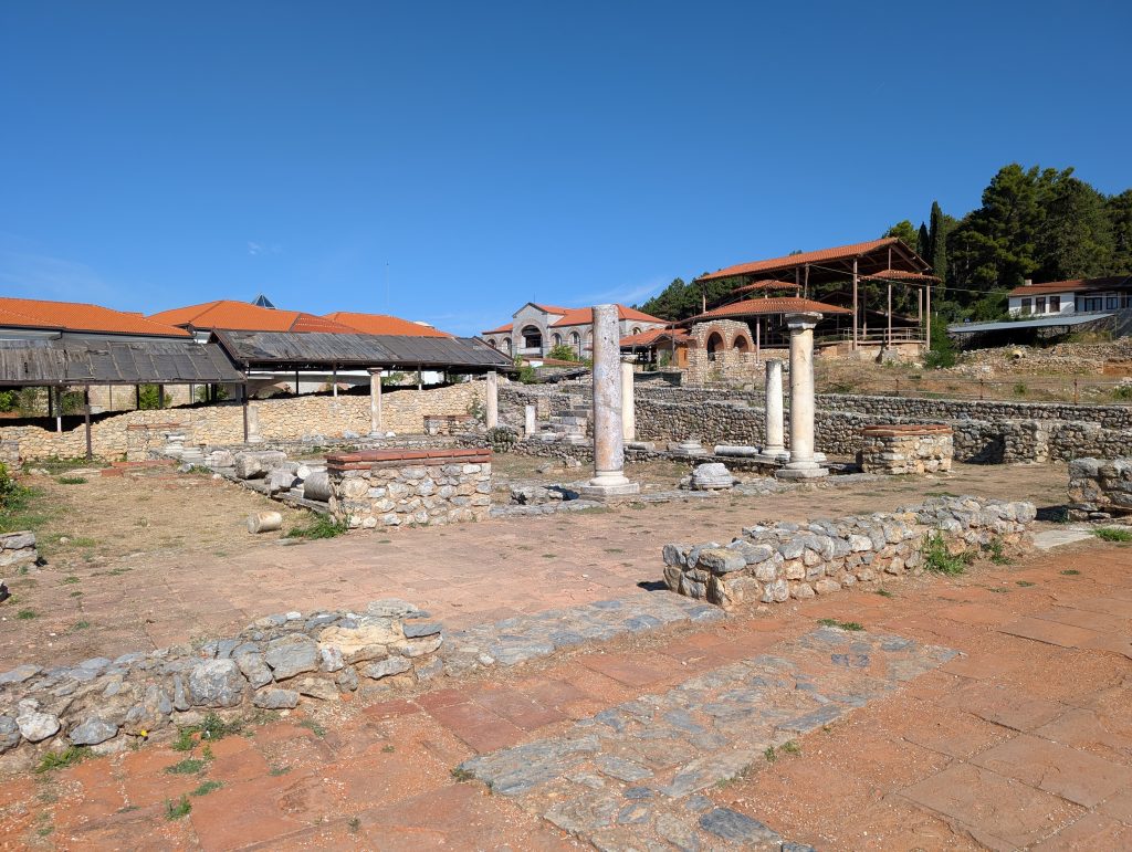 Restored, we went on past the Ancient Macedonian Theatre of Lychnidos (this one Greek rather than Roman, but it is kind of amazing how many European cities have amphitheater ruins) to the Church of the Virgin Mary Peribleptos. This 13th century church was not destroyed or converted by the Ottomans, but left as the main Orthodox cathedral under their rule. Though its frescoes were not plastered over, they’ve also required restoration due to damage from soot and dirt. Unfortunately again, no photos were allowed inside, but they were quite pretty. The icon gallery is next door, but also didn’t allow photos. It was quite small but did provide an opportunity for a closer look at some of the religious art and how it changed from the 10th through 18th centuries, and inspired us to look up some of the stories surrounding various saints.