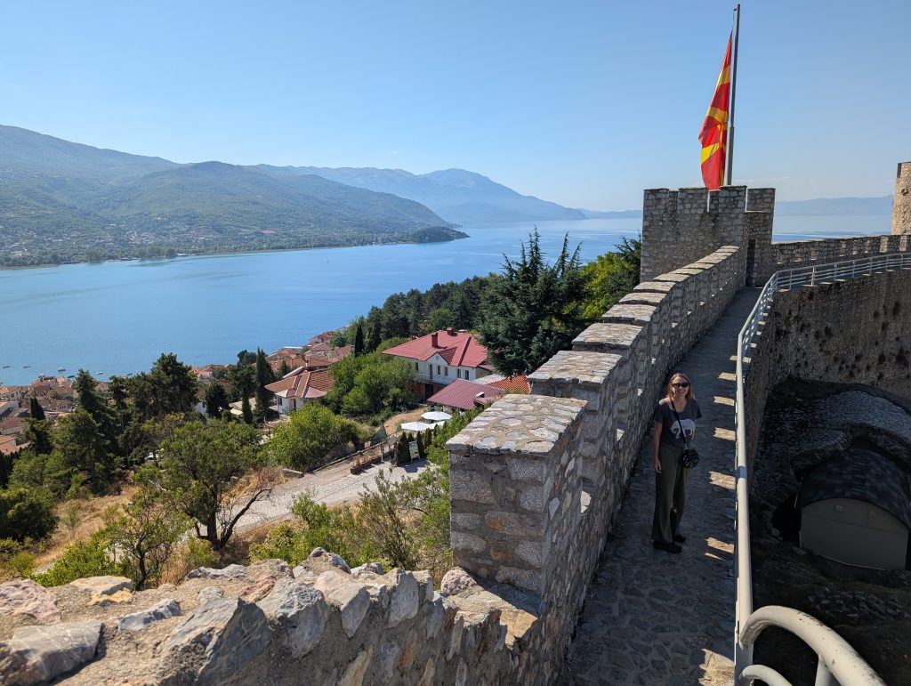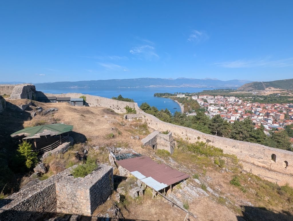 Next we went to Tsar Samuel’s Fortress from the 10th century, though it had been periodically destroyed and rebuilt. We didn’t bother learning much of the fortresses history but enjoyed walking along its walls and the great views of Ohrid and the lake.
