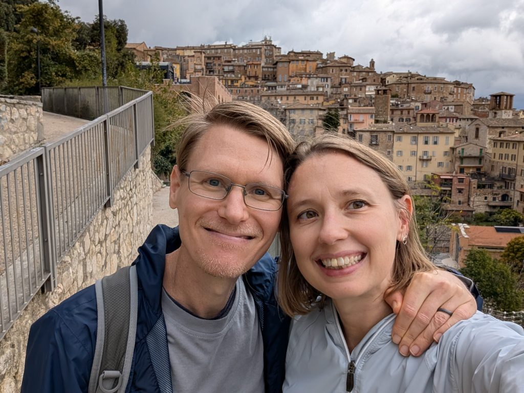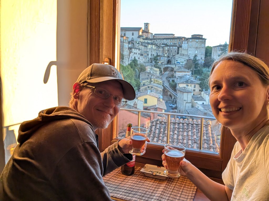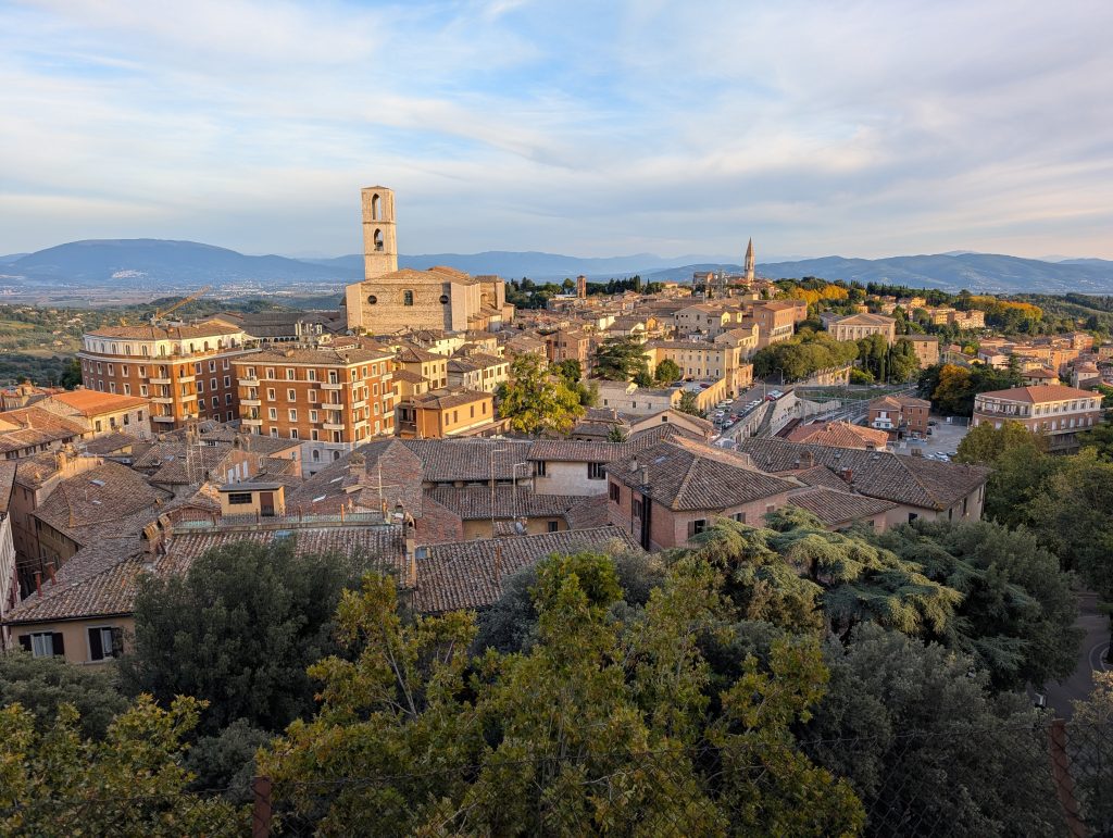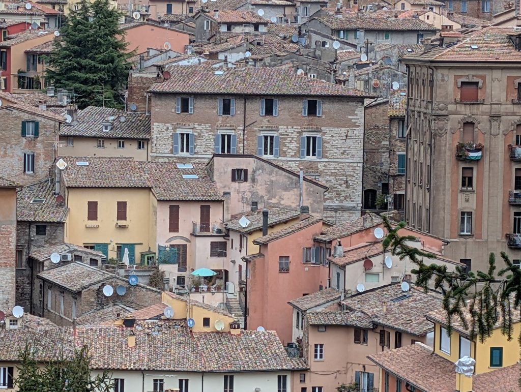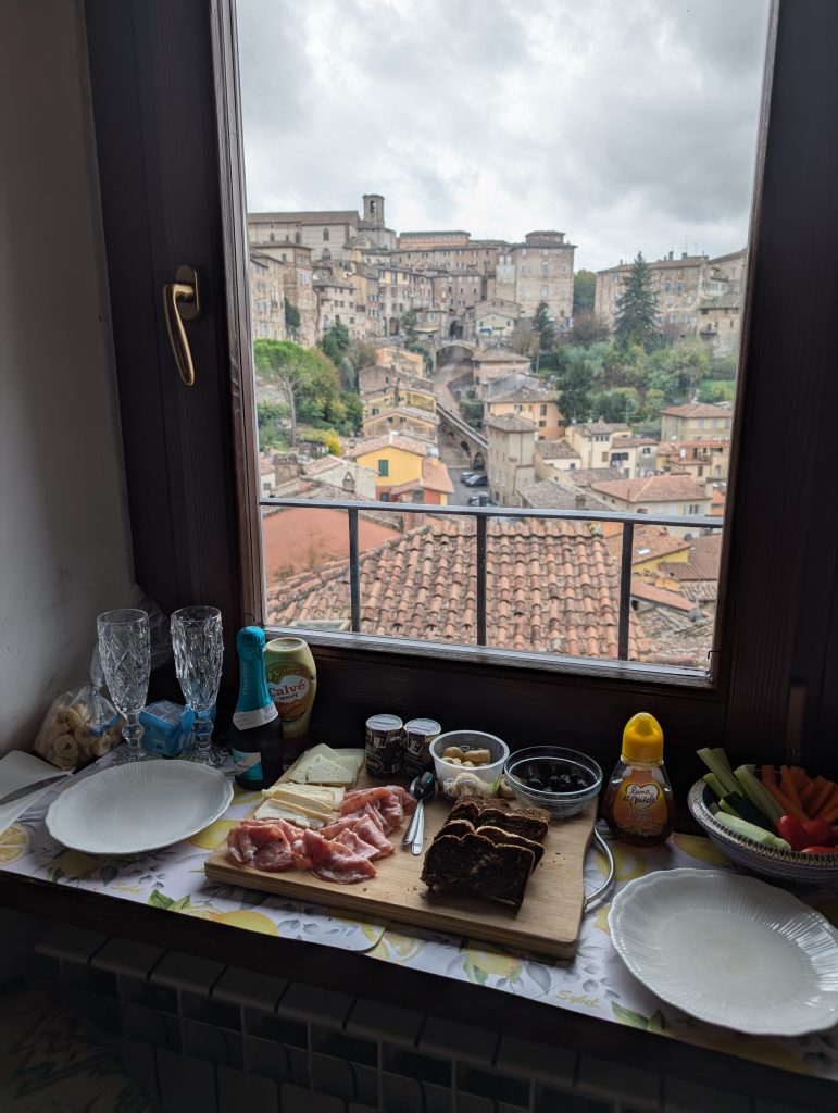 Our first two weeks in Perugia have been a true mix of magical and mundane. On the magical side, we’re living in a charming apartment on the top floor of a 17th century building with rustic wood beams and a stunning view. The history of Perugia goes back to the Etruscans (300 BC) and the streets and architecture still reflect the medieval period. On the mundane side, we experienced near-constant wifi challenges our first nine days here, the weather has been occasionally chilly and rainy, and we’ve had to work a lot (that isn’t Perugia’s fault, just timing).