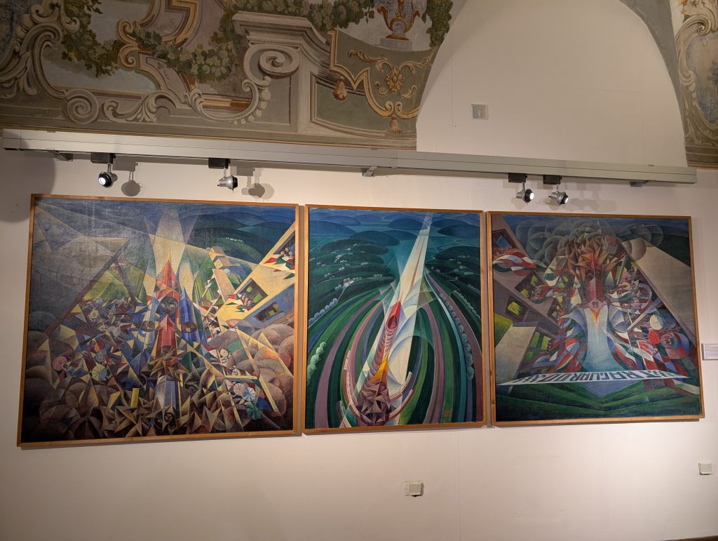 Then we went to an art museum in the historic Palazzo della Penna. It had a permanent exhibit of the Futurist (an early 20th century movement) artist Gerardo Dottori and a temporary exhibition called Japanese Pop, which had a lot of anime. The architecture is beautiful and interesting and we enjoyed the art.