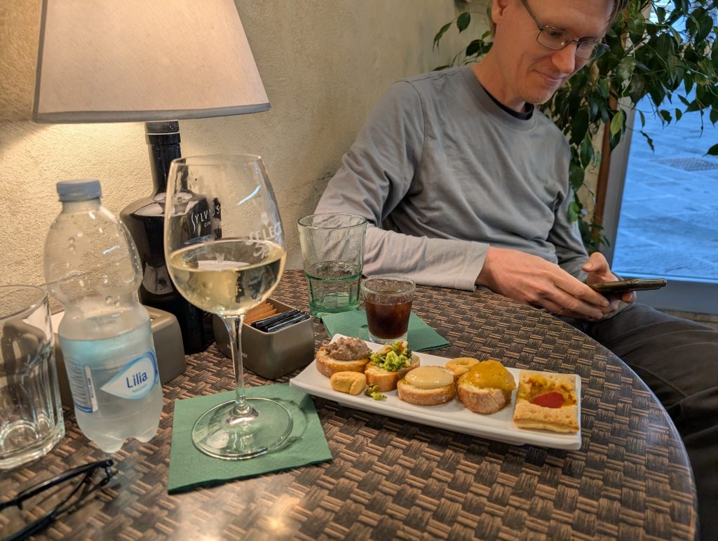 There are all the expected Italian restaurants and cafes and we’ve enjoyed a couple of nice meals out and a few rounds of aperitivi, the Italian tradition of a late afternoon drink accompanied by a free bar snack. Chad has become obsessed with amari (the plural of amaro, which means bitter), an Italian herbal liqueur with a million different varieties. The flavor is very distinctive. He’s been attempting to try all the main ones, tracking his reactions on a spreadsheet. We hope to bring a bottle or two of the favorites home.