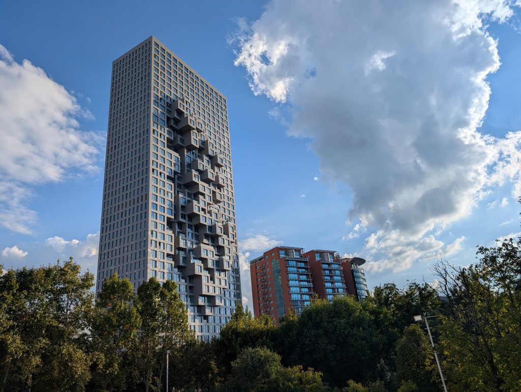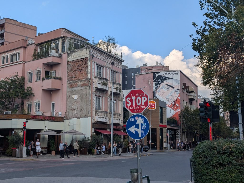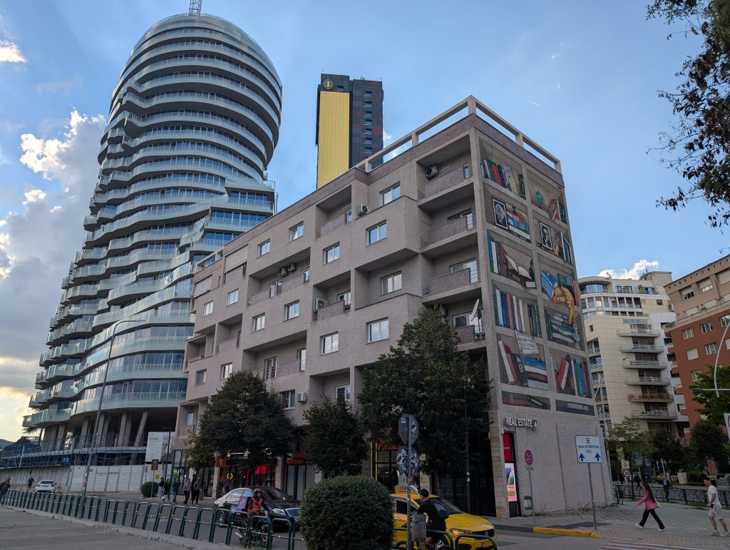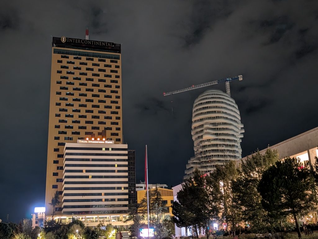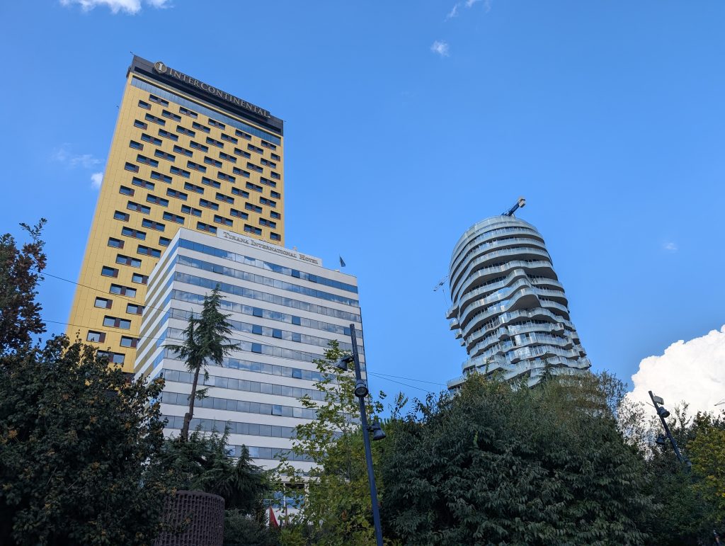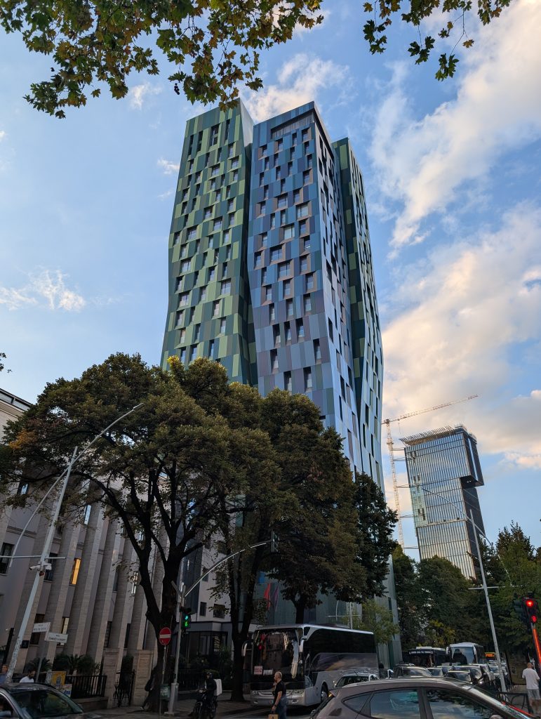 During the last week of our stay, we decided to take a second tour with the company that we did the tip-based walking tour with during the first half of our stay. The guide had mentioned that he also did the 4 p.m. architecture tour and we’d made a mental note since we do enjoy architecture. We were a little concerned that a second tour with the same guide would have a lot of redundancies, but our excellent young tour guide, Kedric, delivered almost all new information for us. It was very interesting, especially learning about the recently built skyscrapers that are part of a competition that will end in 2030, the year Albania hopes to be allowed to enter the EU.