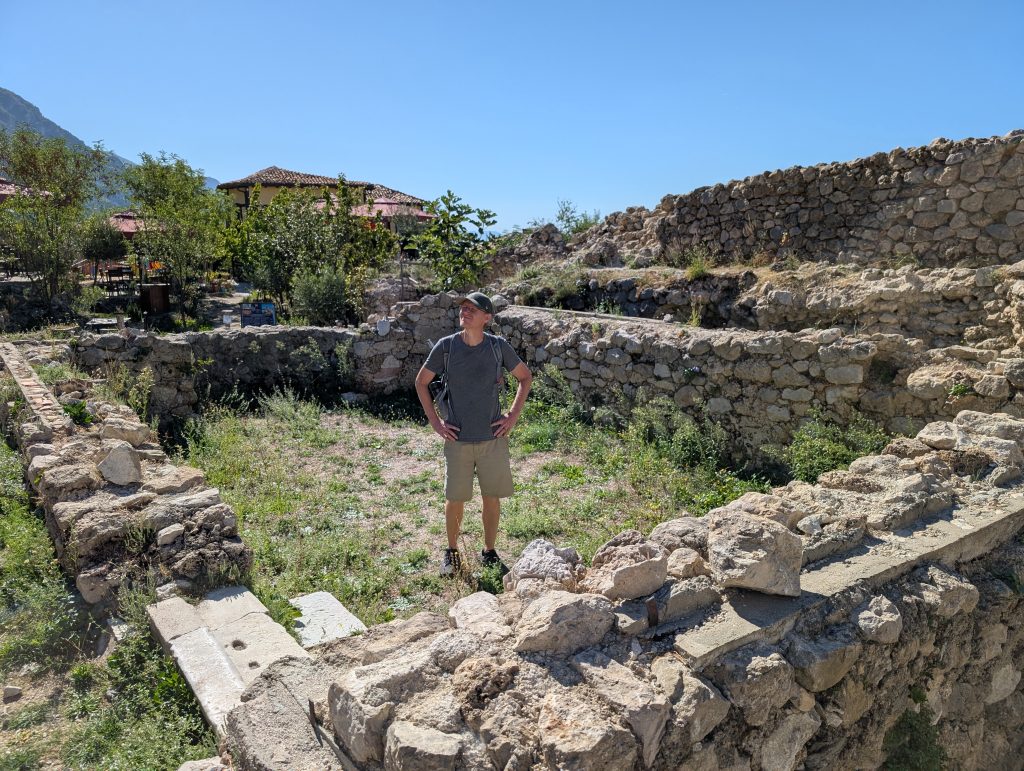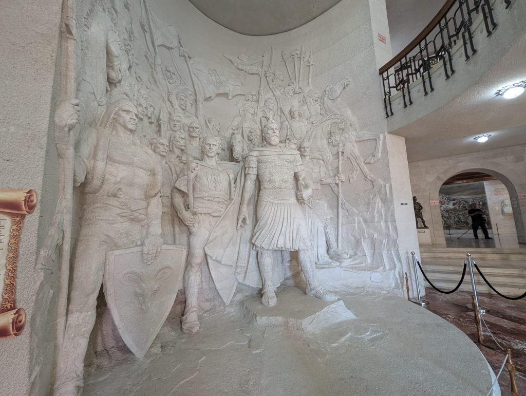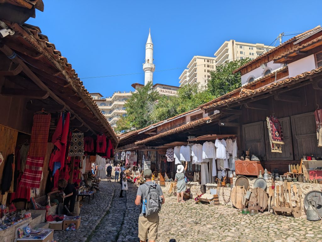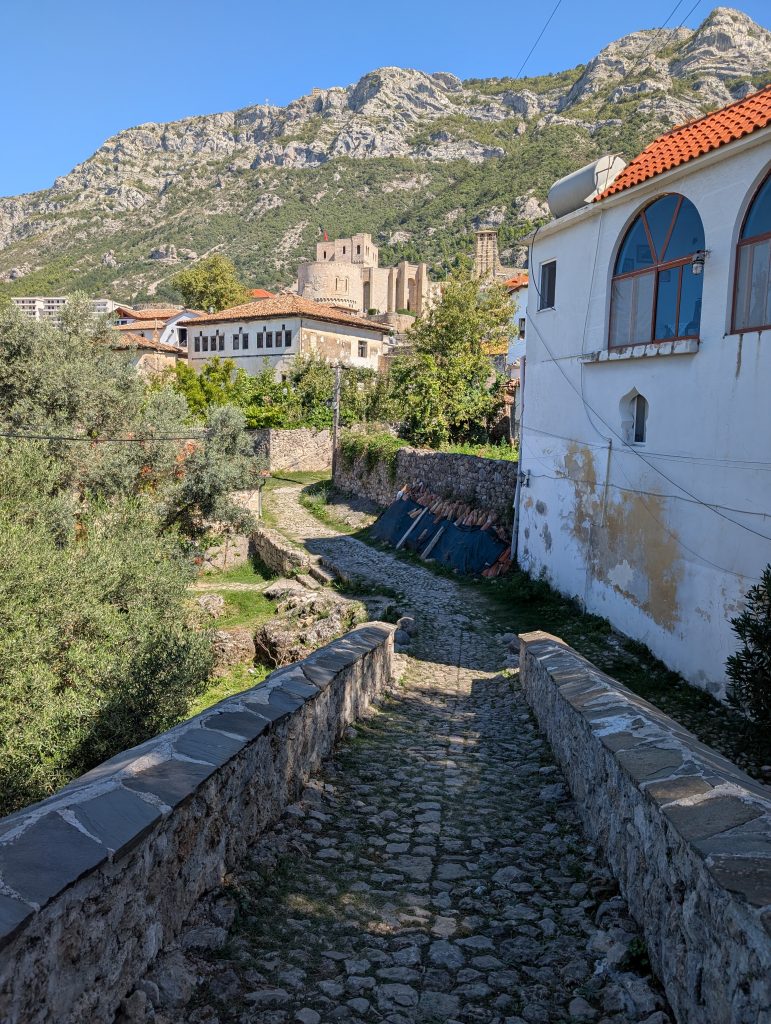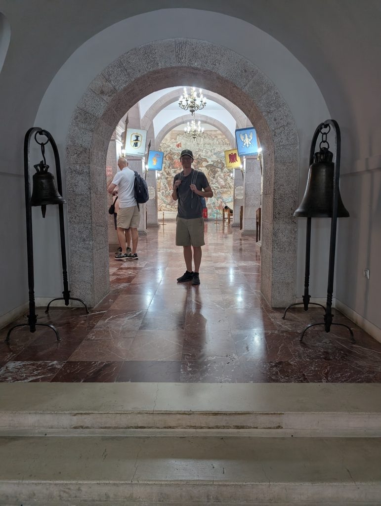 We walked up to the fortress first and explored around that area. It was very picturesque and had great views. Then we spent about an hour looking through the museum (500 lek or around $6 for entry). Skanderbeg really was an interesting and impressive person. His Wikipedia https://en.wikipedia.org/wiki/Skanderbeg page also tells his history well, but the museum did a great job bringing it to life. The highlight for us was the area screening a 1950s Russian film called The Great Warrior Skanderbeg, which has English subtitles. It’s available on Youtube and we’re tempted to watch it sometime, though we haven’t yet.