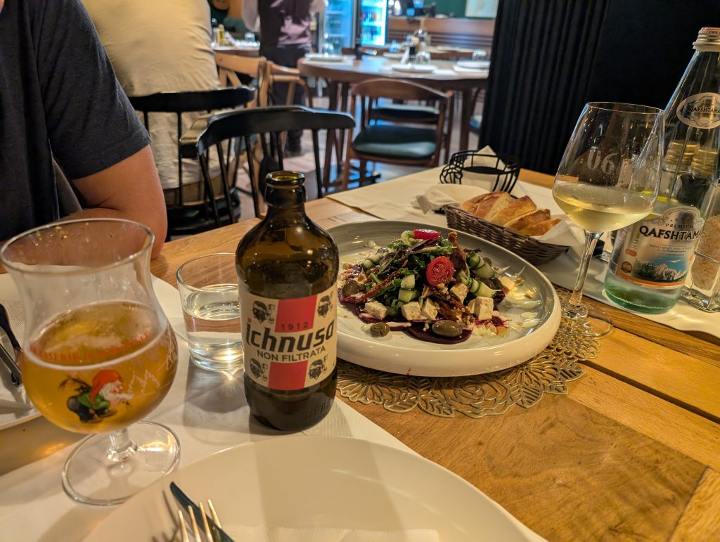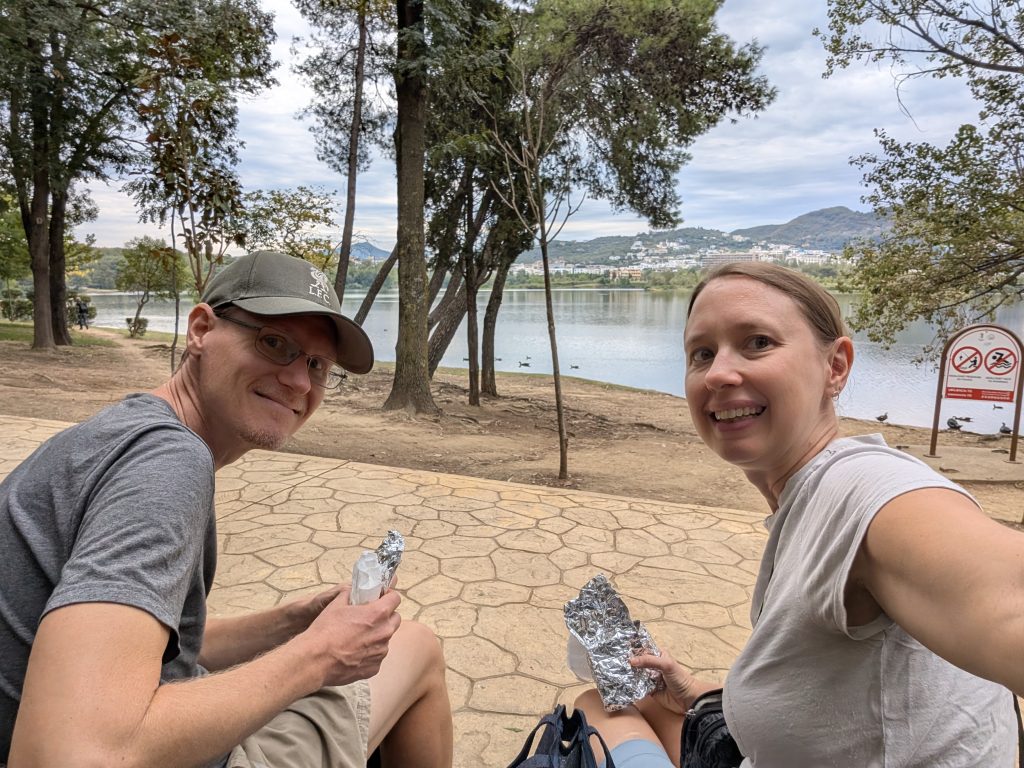 Another highlight of our last couple of weeks in Tirana were several nice dinners out and a few lovely picnics. We continued to enjoy the large lake park and our neighborhood of Bloku. We also cooked some nice meals in our apartment, but I didn’t take any photos of those.