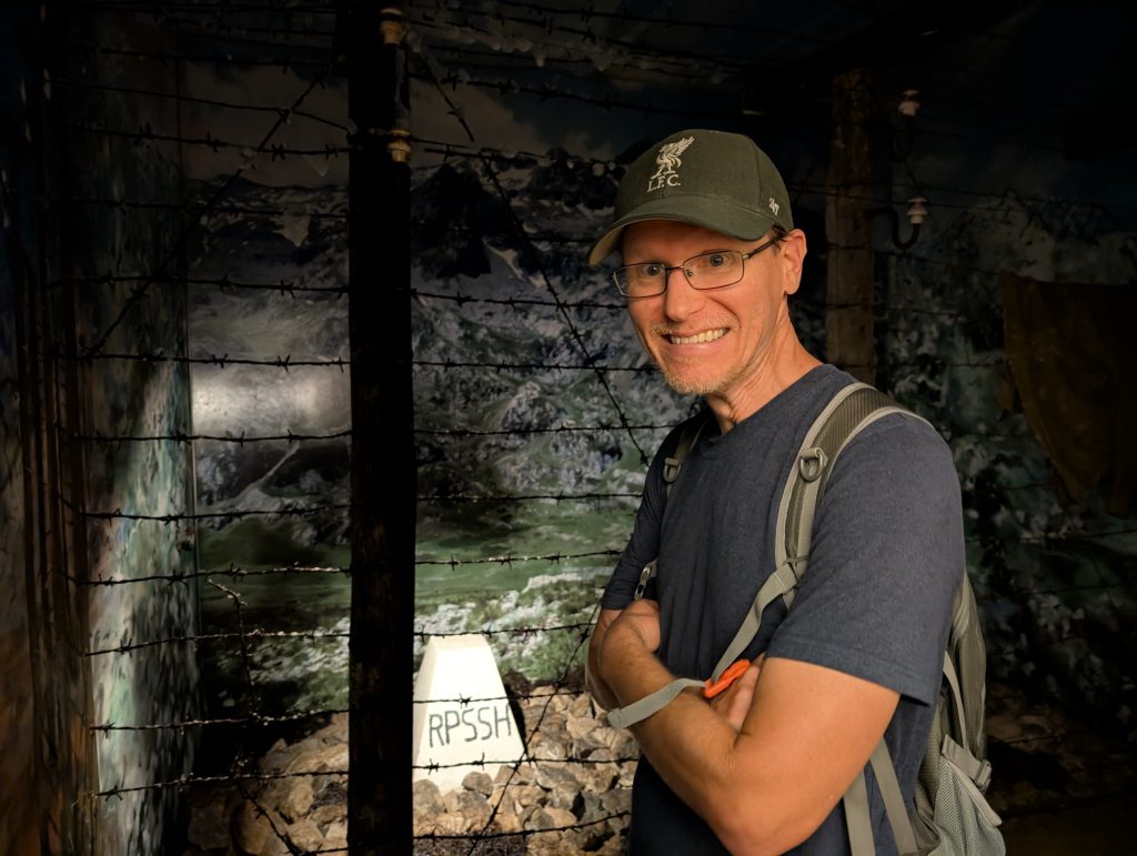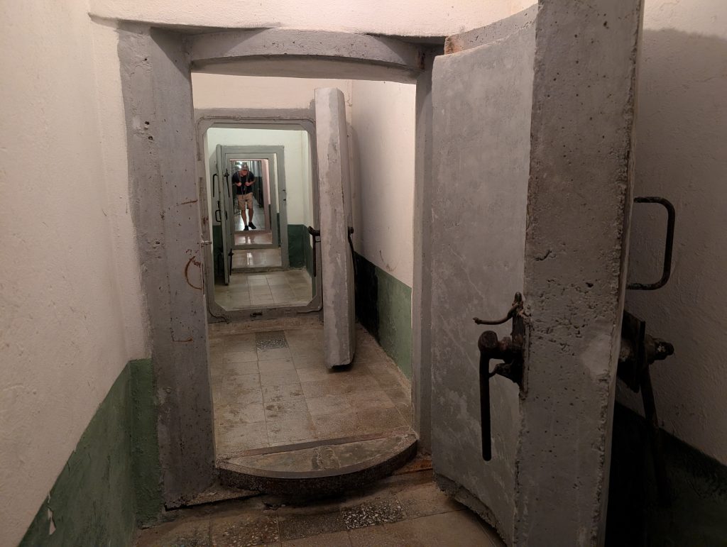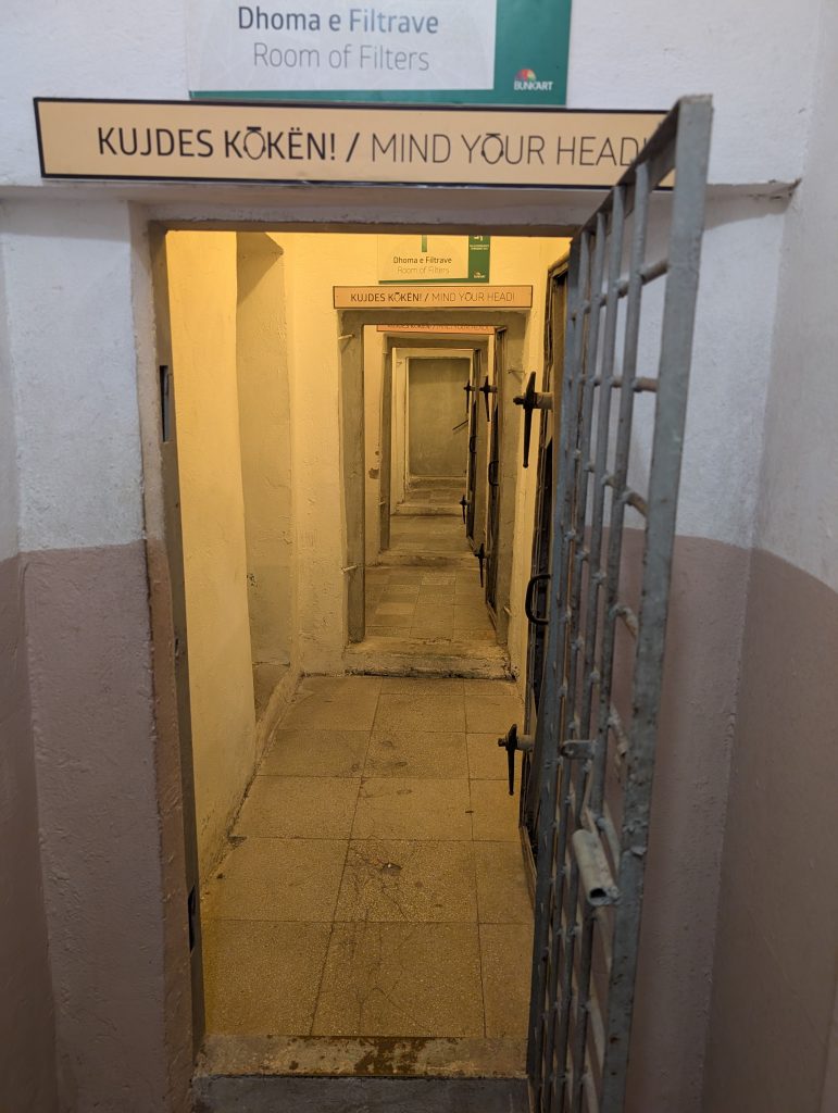 Bunk’Art has a second location in a bunker in the city center of Tirana, but we chose to go to the much larger original version, which required taking two buses but was not too difficult to reach. And it was well worth it. You reach the Bunk’Art entrance through a long tunnel that really sets the mood. Tickets are 900 lek each ($11) and we were able to pay by credit card.