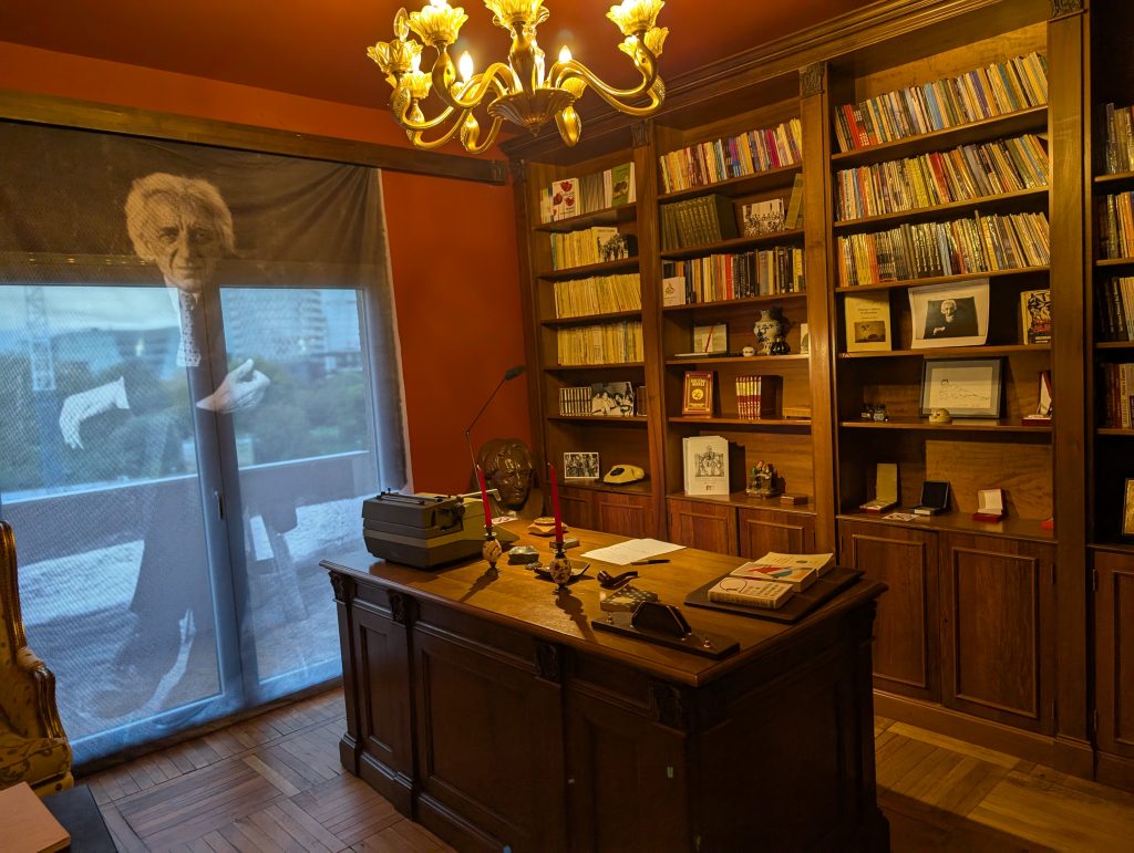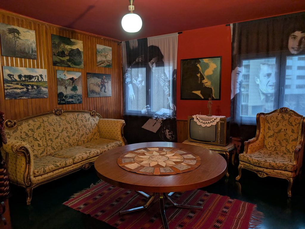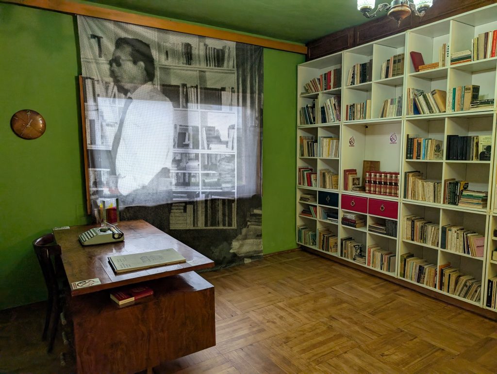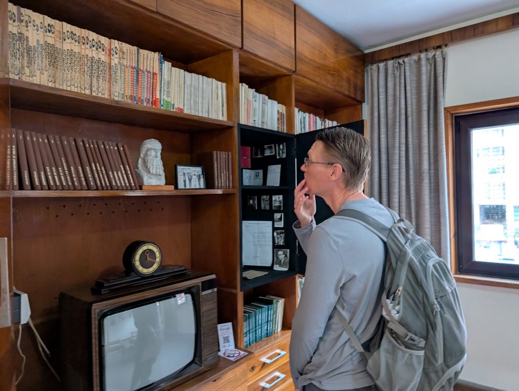 On the tour, we learned about the Kadare & Agolli House Museum dedicated to two prominent Albanian writers. We decided to visit it on our last night out in Tirana a few days before we left. The exhibits were very interesting and it must have been enormously frustrating to have been an intellectual under communism. Both writers actually seemed to do pretty well for themselves, though, and managed to stay on Hoxha’s good side. They even had diplomatic passports and were able to travel. But I’m sure it cost them compromises. Kadare, the more famous of the two, had bookshelves of banned foreign books in his private study. I imagine both could see how bad conditions were under Hoxha, but they had to be very subtle about incorporating it into their work, which was of course censored.