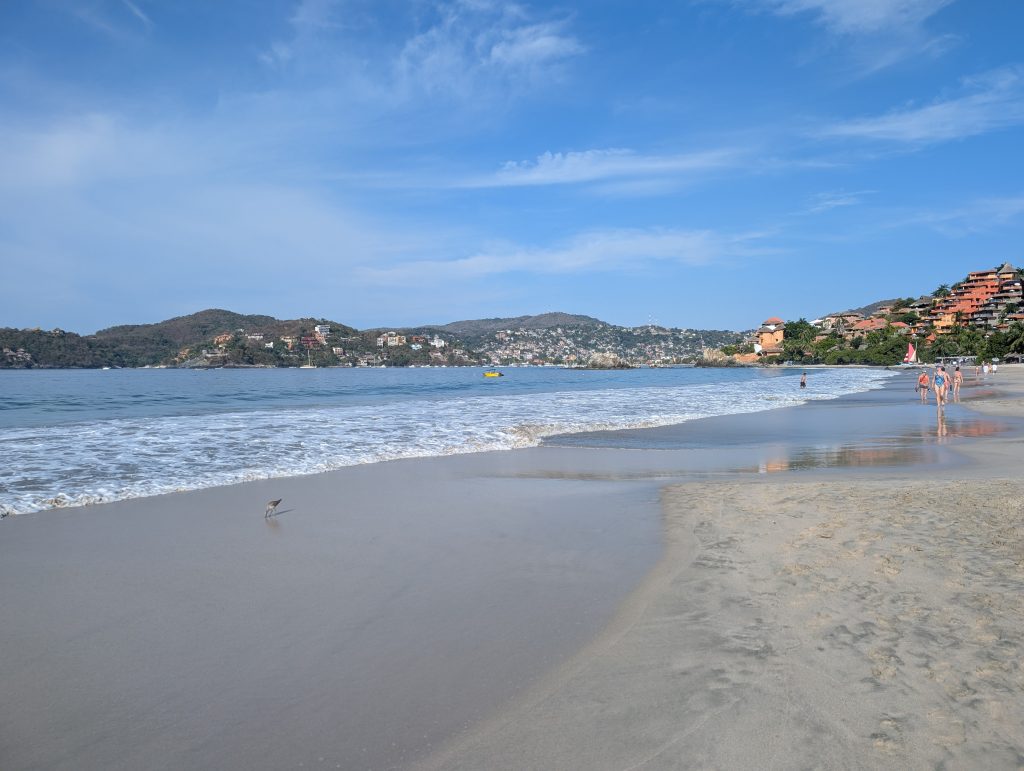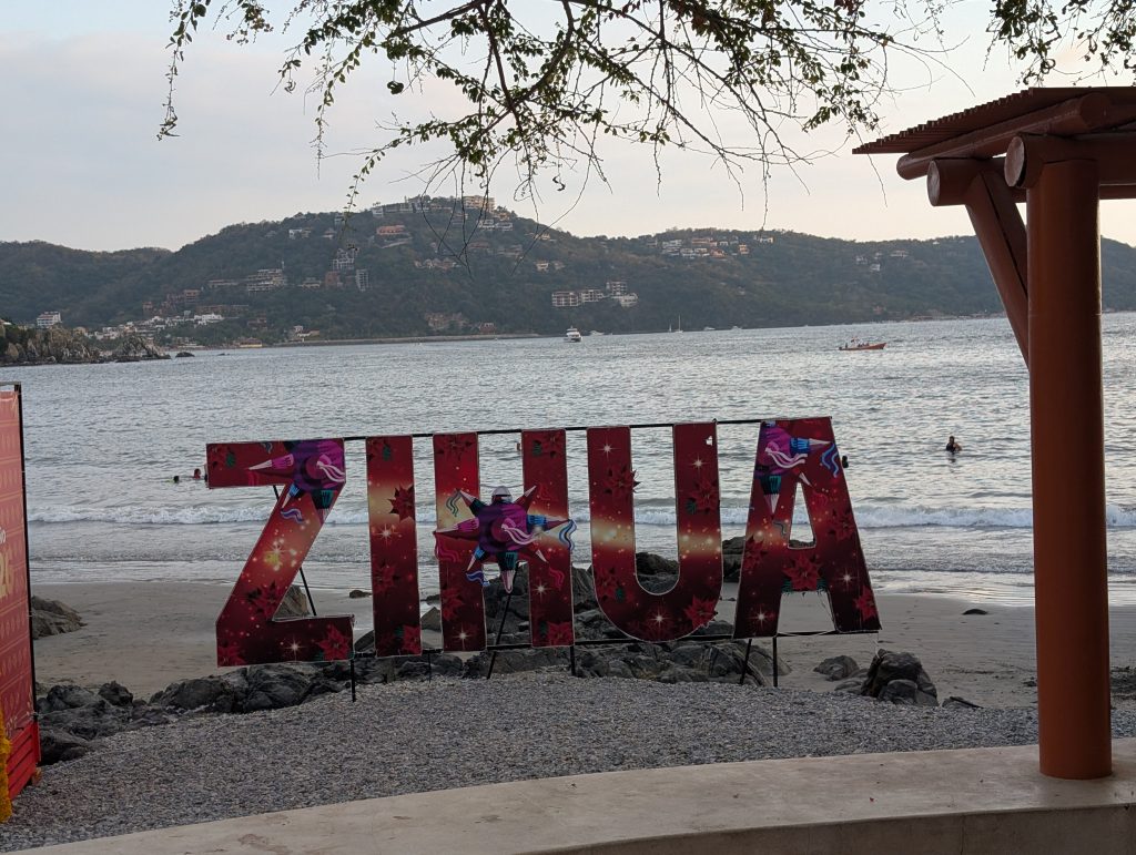 We were eager to see how Zihua (as it’s known) would compare to our first long beach stay in Puerto Escondido (also known as PE). The Zihua area is over double the population of PE-Zicatela (125,000 vs 50,000) size. It feels more built up here, though not like Puerta Vallarta where we’ve also had a long beach stay or Playa Del Carmen where we’ve visited twice. It also feels like there’s a lot more money in the city with its nice parks, good side walks, and public bathrooms. The malecon (paved path along the water) is especially nice and has several sculptures celebrating Zihua’s history. We’ve also had a couple of power outages, but they only lasted 30 minutes are so and averaging one per week is less frequent than we experienced in PE.