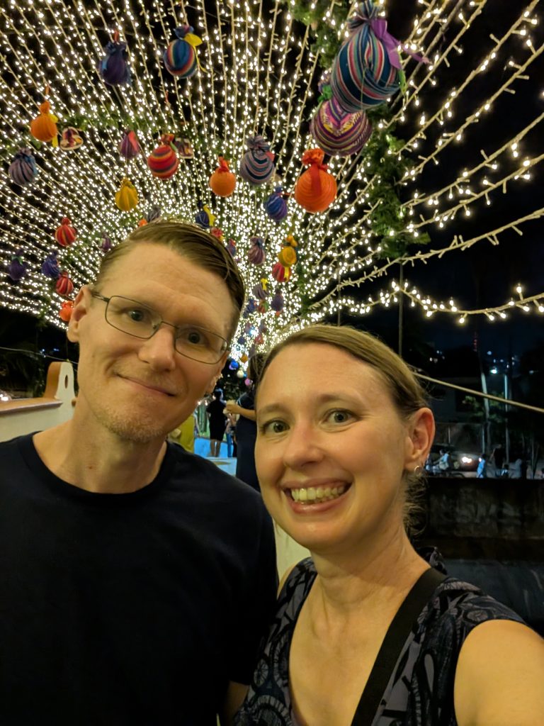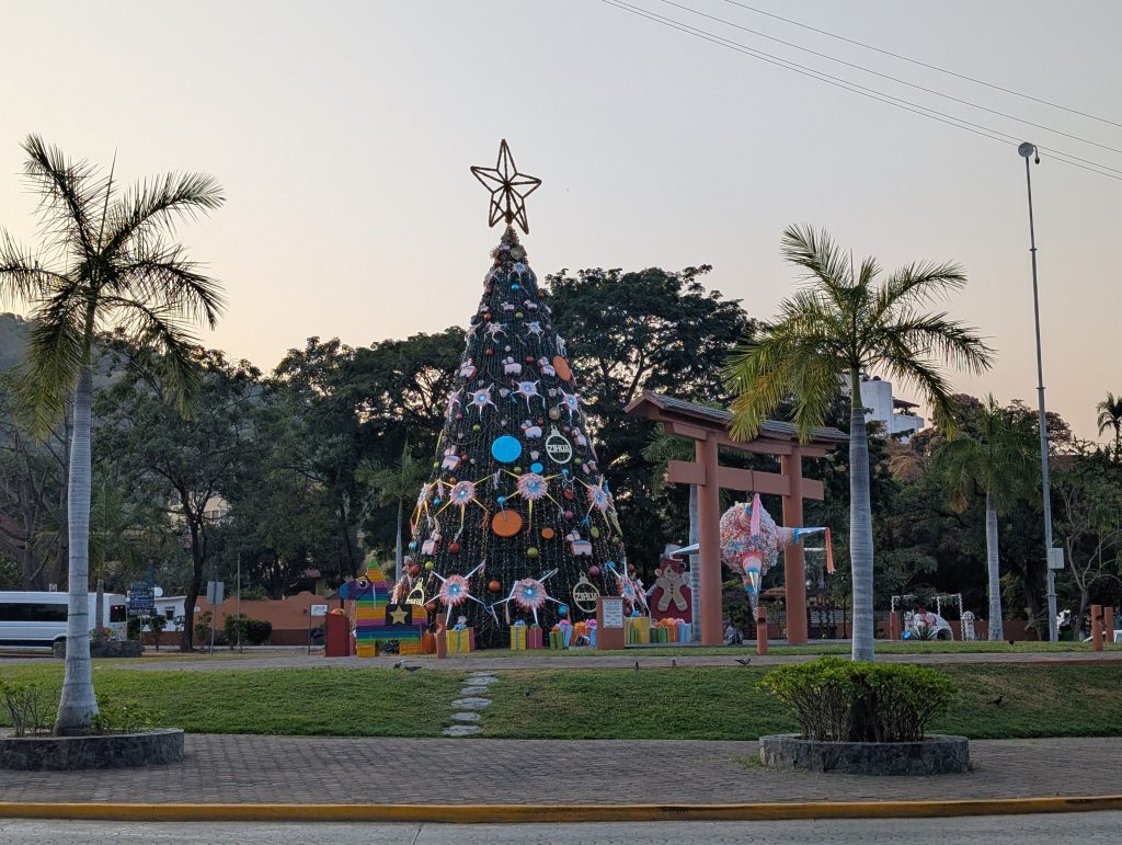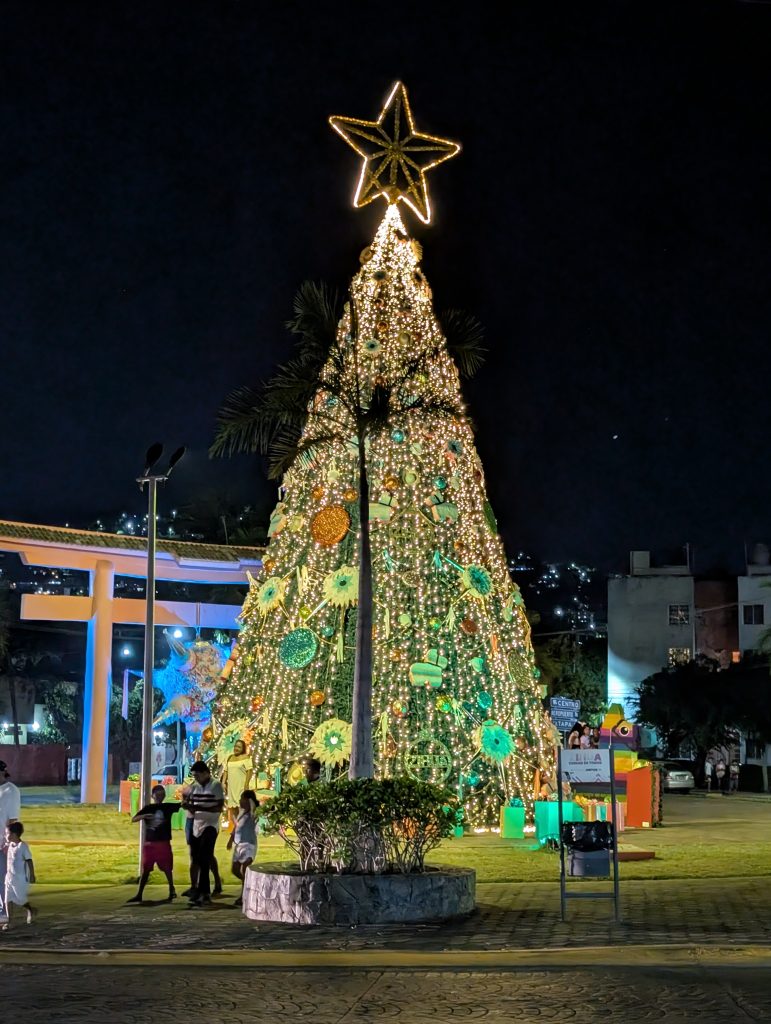 The Christmas season in Mexico goes until January 6, el Día de los Reyes Magos (Three Kings Day), known in my tradition as Epiphany. We arrived on January 3 so we had a chance to enjoy some of Zihua’s beautiful Christmas decorations. They came down very quickly after Tres Reyas, so I’m glad we arrived to see. There’s something about Christmas at the beach that I find really appealing (I think it’s the weather).
