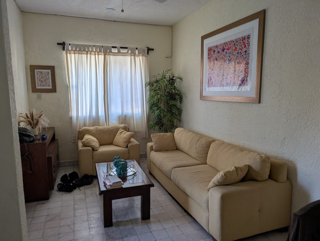 When we arrived in Zihuatanejo, we were amazed at how quickly we passed through passport control. However, when they scanned our bags at customs, they demanded a 1000 peso ($56) fine for bringing our chef’s knife into the country in our checked luggage. After a little arguing, they agreed we could avoid the fine by throwing. We decided to do that rather than give money in what felt like a shakedown and get by on Airbnb knives until we can replace it. We have our knife sharpener along, so that has helped.