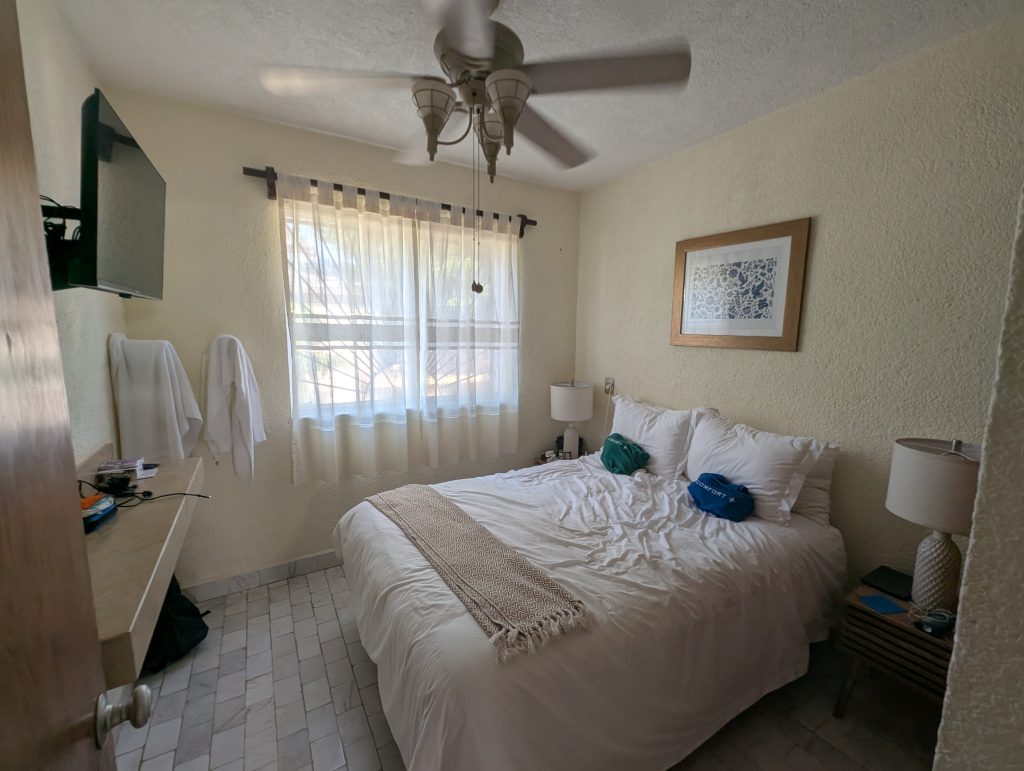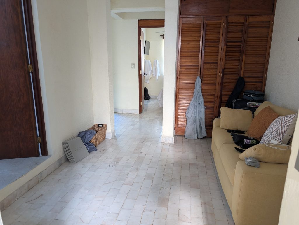 Despite smooth travels reaching Zihua, our arrival here was still pretty rough. We did an overnight stopover in Dallas because American Airlines has a mid-morning flight to Zihua. Taking an evening flight from St. Louis was cheaper than flying out on an early morning flight and we would have had the night in the hotel anyway. The stopover went really well. We got a good night’s sleep in our airport hotel (La Quinta DFW Airport North), a good breakfast, and the shuttle back and forth ran well.