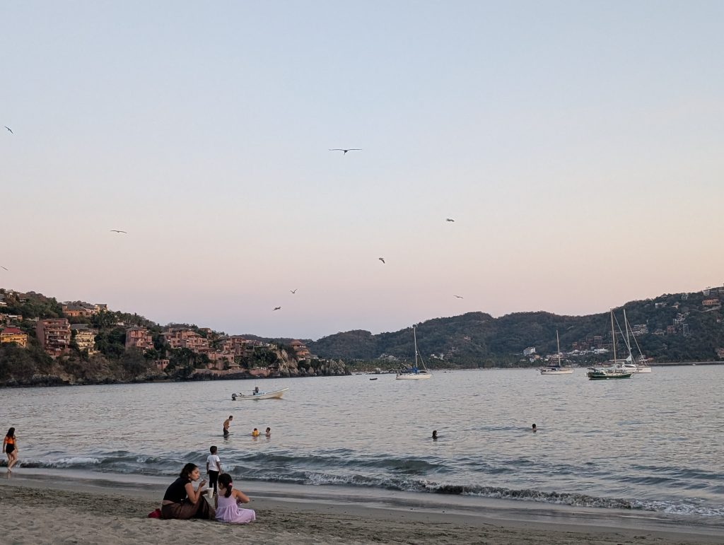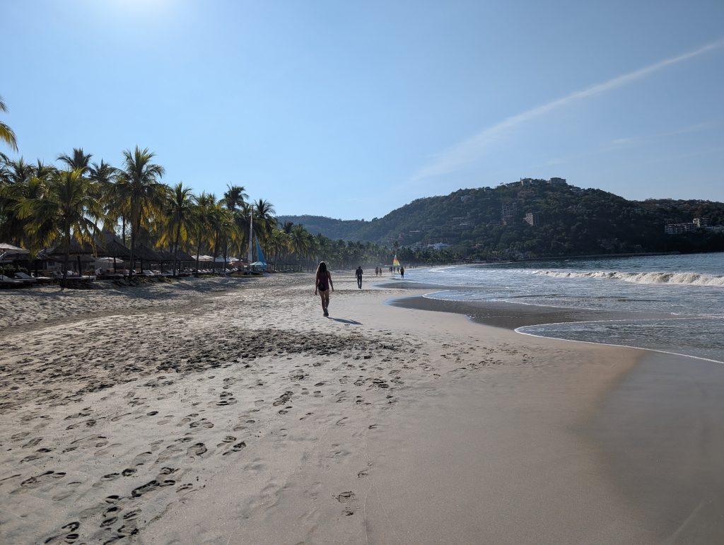 Zihua is built on a bay on the Pacific, which means the waves don’t get too dramatic and the water isn’t too cold. Like PE, Zihua has several beaches that each have their own vibe. Playa Principal is right off “el corazon” (the heart of the city) with the malecon and tons of restaurants, fishing boats and a pier. It and Playa La Madera are each about 12 minutes from our Airbnb.