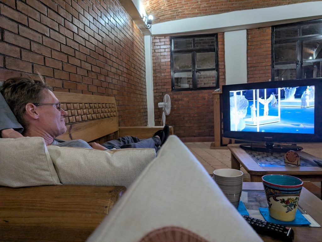 The last few days have been much warmer in Guanajuato with daily highs in the upper 70s Fahrenheit and overnight lows in the low 50s. The apartment has been staying around 20 degrees celsius (68 Fahrenheit), which is comfortable enough. We didn’t need the heater at all yesterday but Chad is using it this morning.