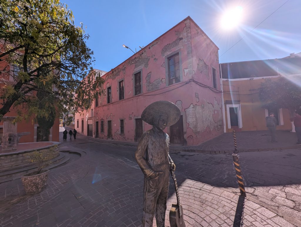 Some of the most interesting facts were about Guanajuato’s tourism history. For example, the colorful homes are part of an initiative from the government in which they actually paint people’s houses for them to keep them all looking nice and create the colorful vistas. Ramses told us that his aqua house has been painted twice. We thought this was an outstanding idea, since this has become such an iconic feature of Guanajuato. The Don Quixote connection dates back just to the 1950s after the university’s theater professor started staging Cervantes plays in various plazas in Guanajuato. This eventually became the annual festival in 1972, which takes place each October. And Guanajuato is also known for the nightly shows by Estudiantinas, groups of musicians who do nightly music shows in 17th century costumes. This was an idea brought back from a university trip to Spain in the 1960s (if I remember correctly what Ramses said). Ramses told us he performs in one of these groups, so we may check it out during the second half of our stay.