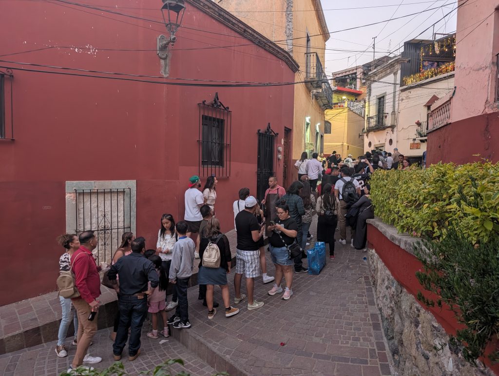 This year, we again followed our Christmas gift-giving strategy of doing six joint activity gifts throughout the year with parameters selected through random drawing. The first of the year was Mexico, tour, and culture/education, so we booked a private walking tour here in Guanajuato to learn more about the city and culture. I’m not sure it was quite worth the price tag ($100 + tip) but we had a great time and learned a lot from our guide, Ramses.
