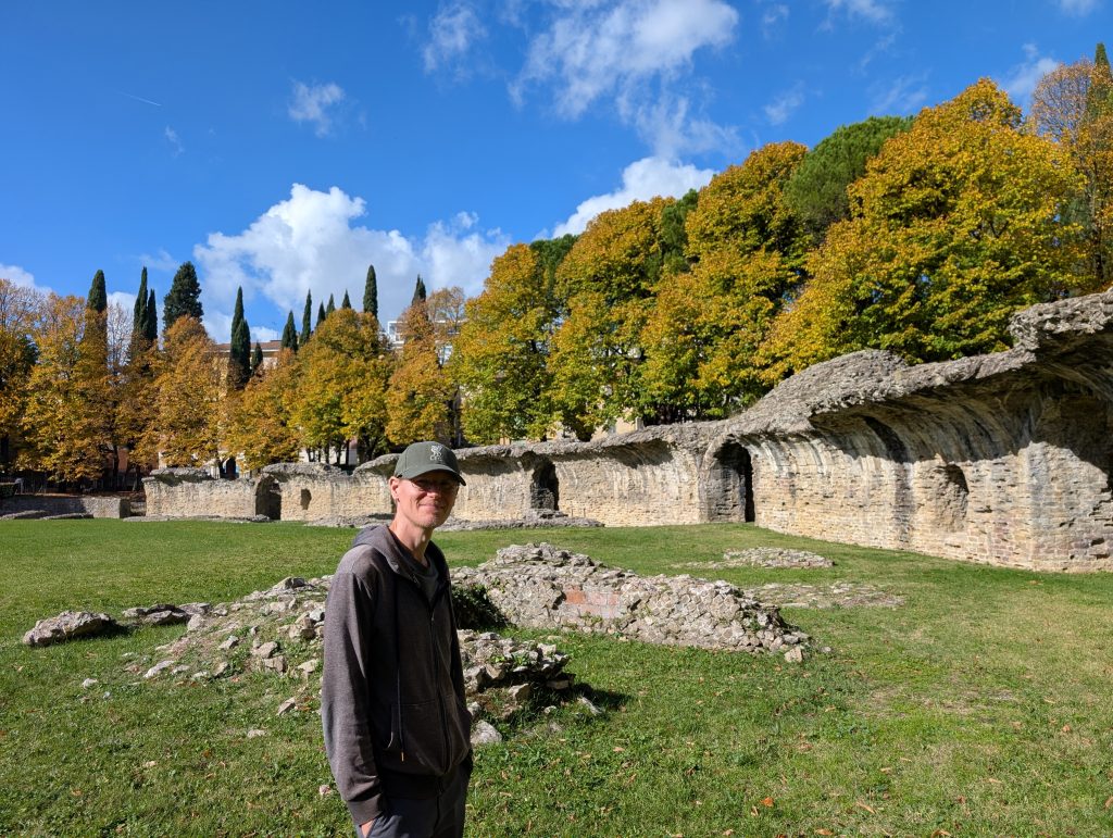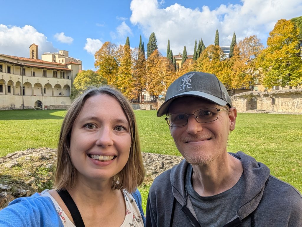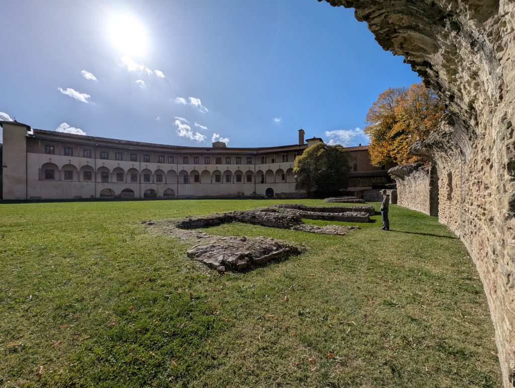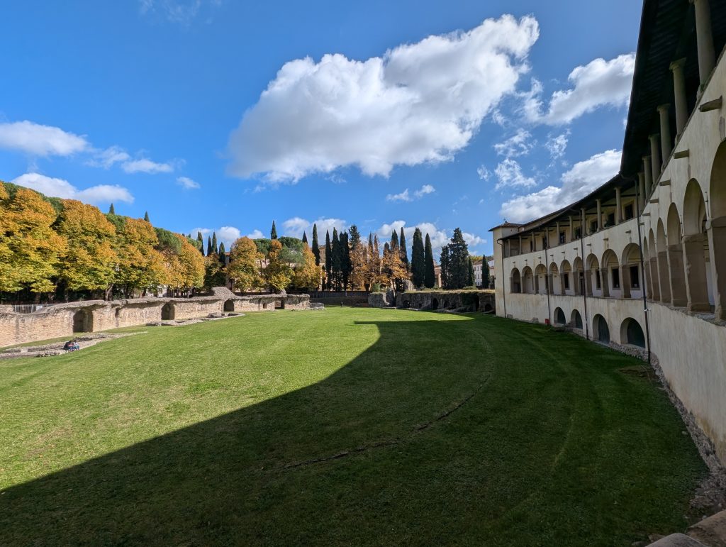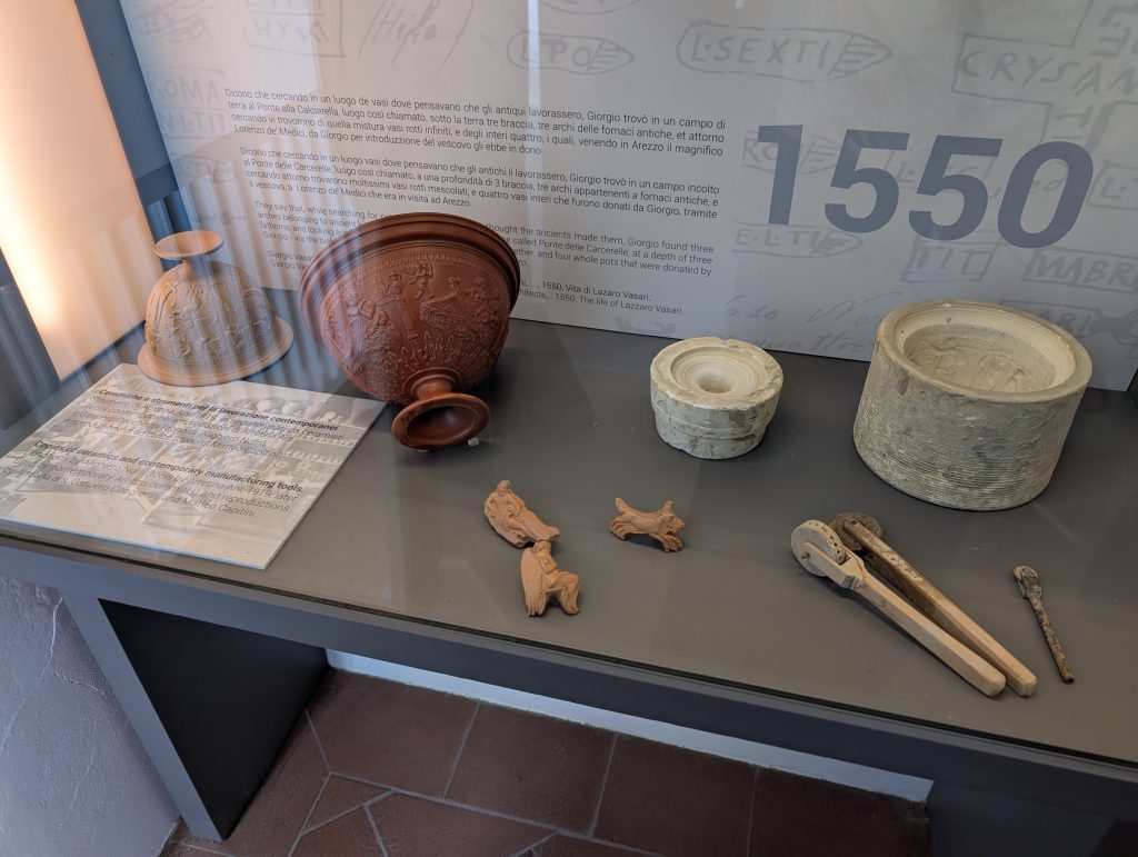 This archeological museum is housed in a former monastery built over the remains of a Roman amphitheater. Though it traces the whole history of Arezzo, the main focus is on the many Etruscan artifacts found in the area, in particular pottery. We’ve encountered Etruscan items in museums before but this was the most comprehensive exhibit we’ve experienced and we learned a lot about this mysterious culture that flourished in Umbria and Tuscany from around 800 to 100 BCE. There aren’t a lot of written records of the civilization and it was sort of subsumed by the ancient Romans as they expanded. We enjoyed the museum very much and spent a over an hour there between the exhibits and the exterior amphitheater space.