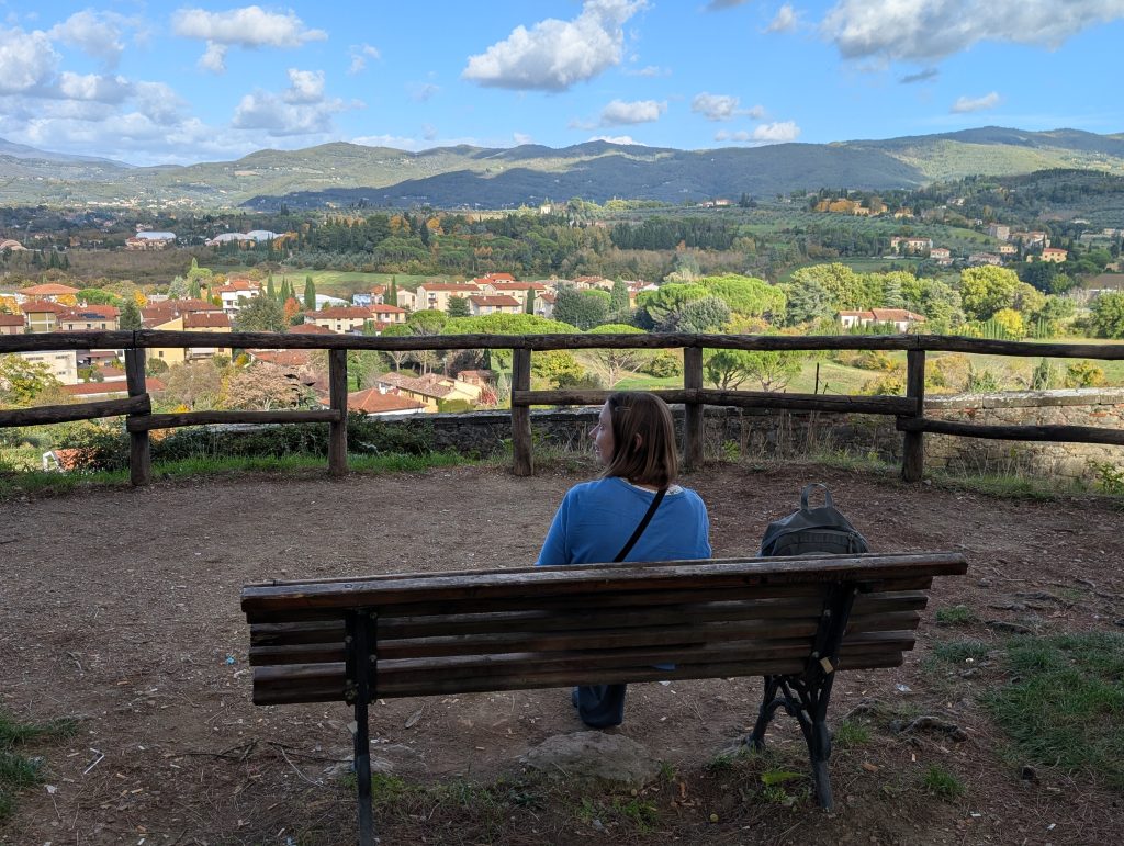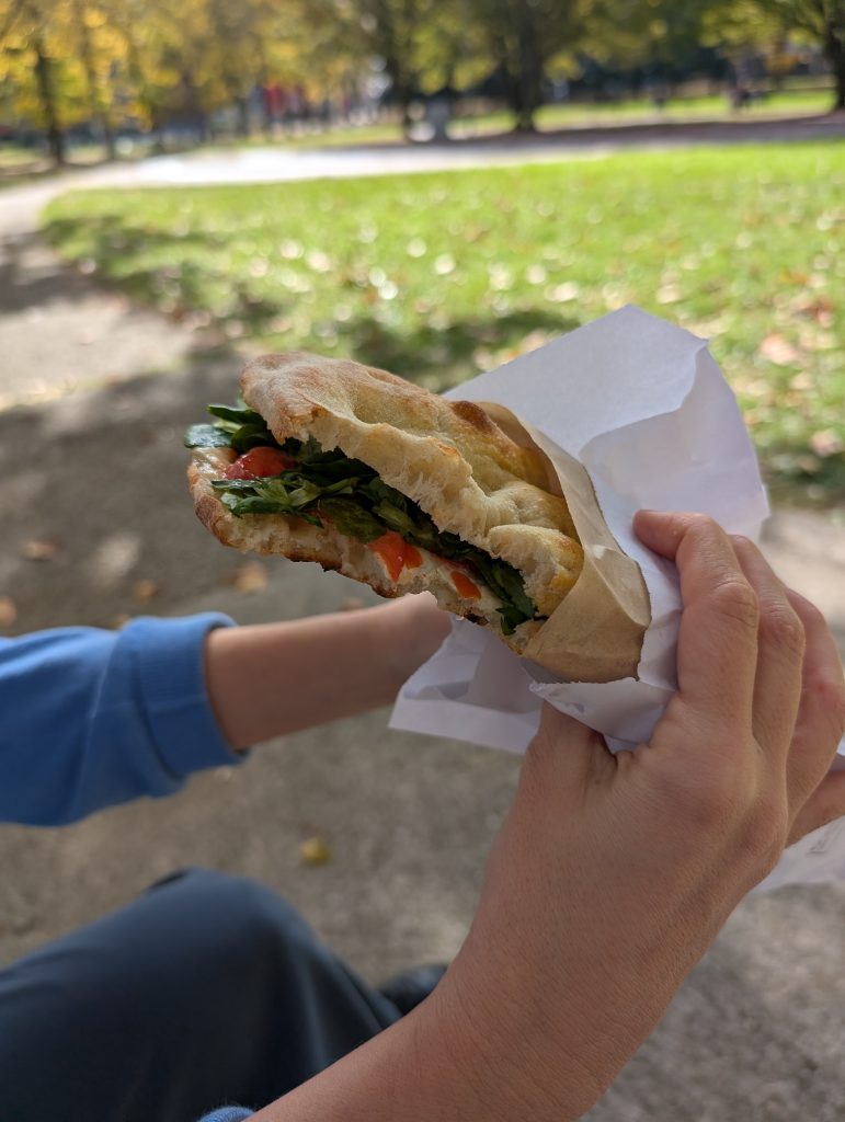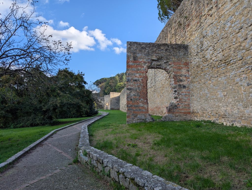 After the museum, we walked into the old town and picked up a couple of Schiacciata sandwiches from Lo Spaccio Focacce Panini. Schiacciata is like focaccia but flatter and crunchier. The name actually means “crushed.” We chose two vegetarian varieties, one with potato and truffle and the other with vegetables and hummus. They were very good. We took them to go to the Parco Elsa Rosi Nofri not far from the archeological museum.