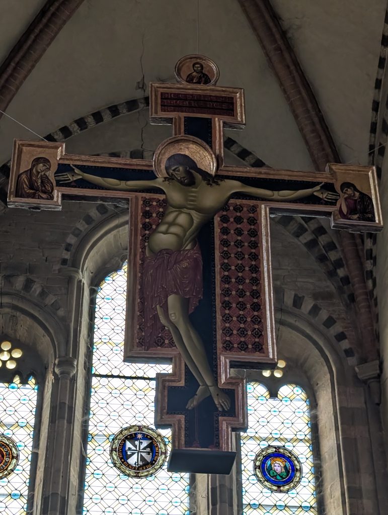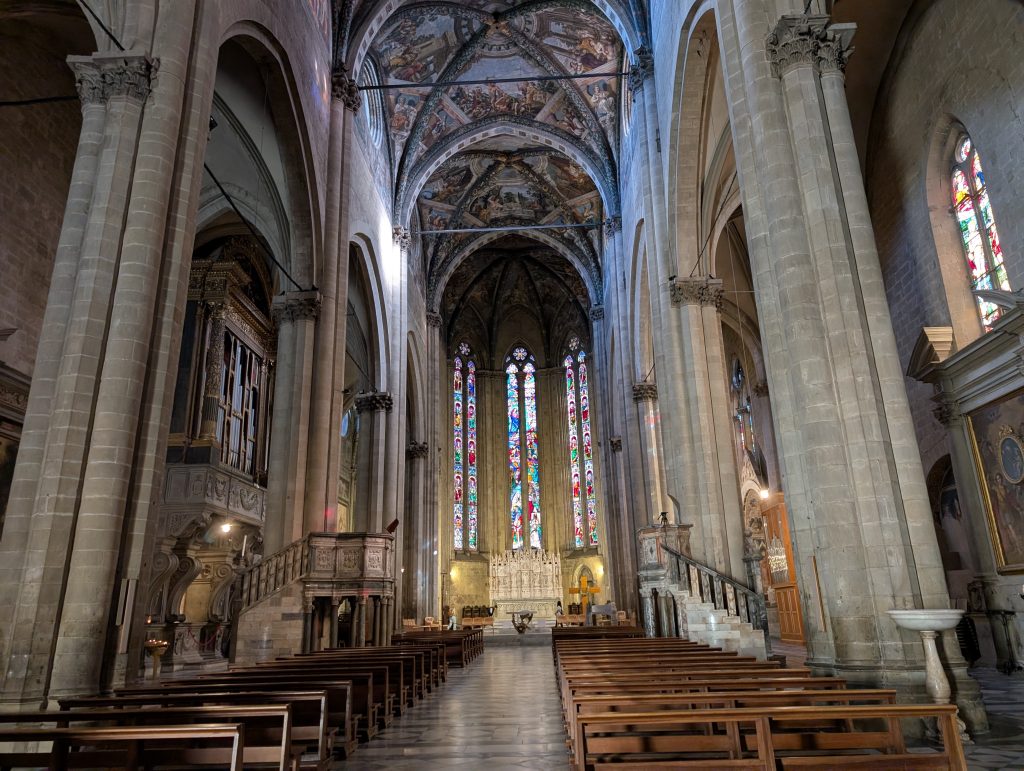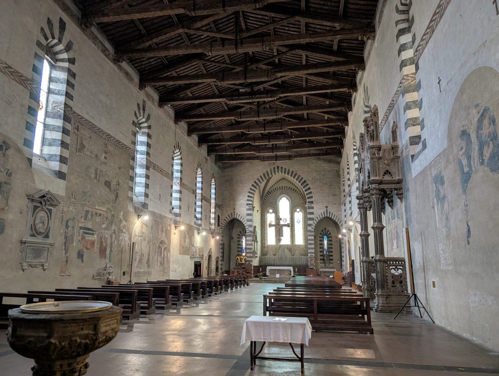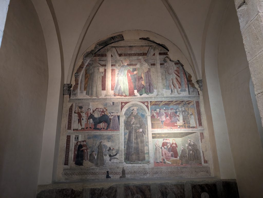 After lunch we spent some time wandering through town. Some of the main points of interest are the Piazza Grande, the old city walls, and the Parco Il Prato. They also have a Medici Fort but it had mixed reviews so we decided to skip it. The Parco Il Prato especially has beautiful views over the countryside and Chad had a little macchiato from the cafe there to perk up for our afternoon sightseeing. The Cattedrale dei Santi Pietro e Donato is right next to the park, so we checked that out before moving back toward the main part of town. We also stopped into the Basilica di San Domenico, a 14th century church featuring a crucifix painted by the famous 13th century Italian artist Giovanni Cimabue.